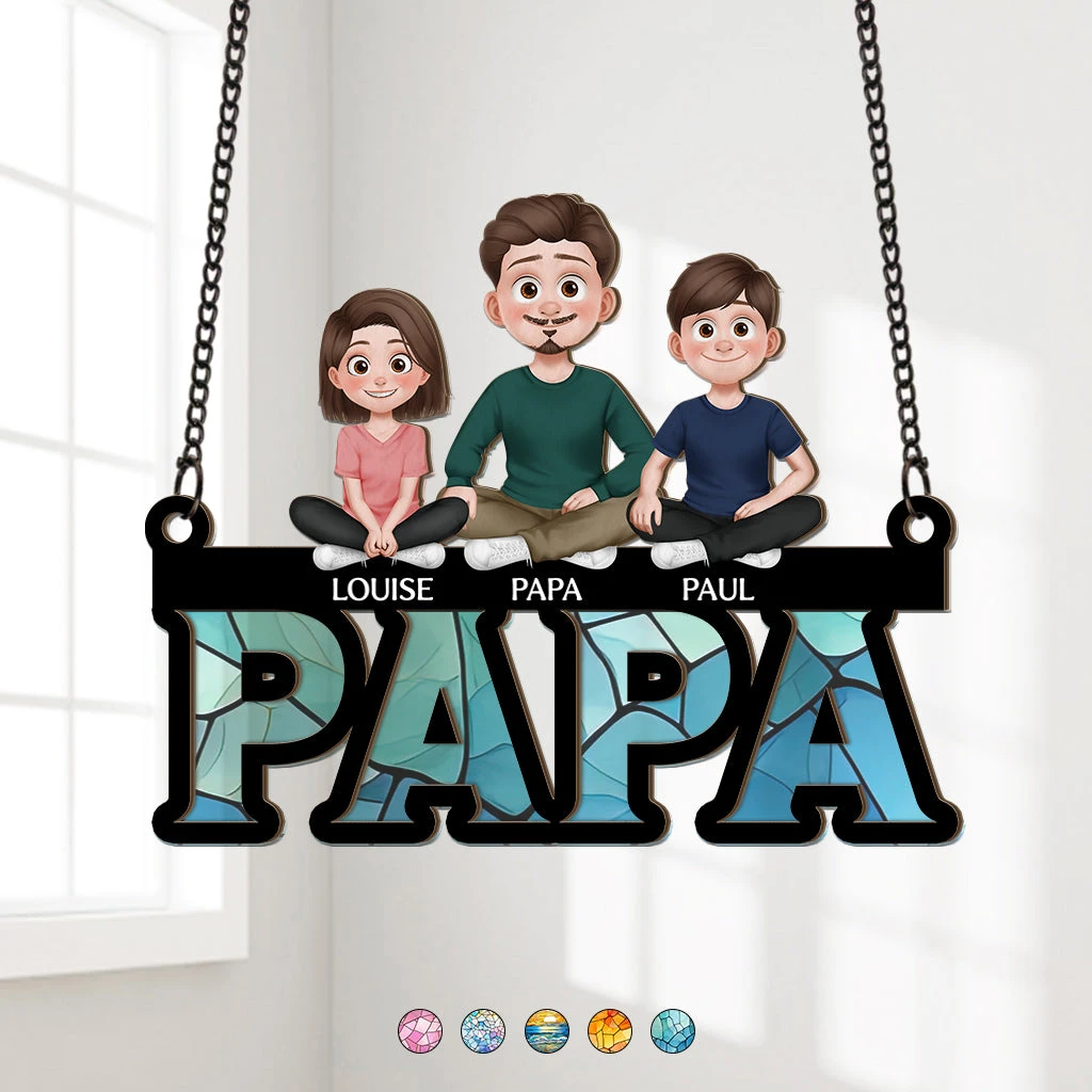 Attrape-soleil Vitrail Personnalisé Pour Papa – Design Cartoon