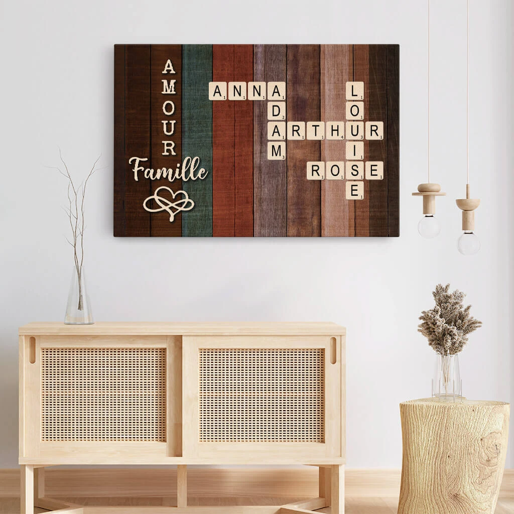 Créez une œuvre unique et remplie d’émotion avec ce cadre mots croisés famille, où chaque prénom devient une pièce essentielle d’un tableau symbolique. Inspirée des mots croisés personnalisés, cette toile illustre les liens du cœur avec douceur et profondeur. Parfaite pour célébrer l’amour parental, la famille du mot amour ou encore transmettre un message sur la toile mots fléchés, elle s’offre en toute occasion : anniversaire, pendaison de crémaillère ou fête de famille.