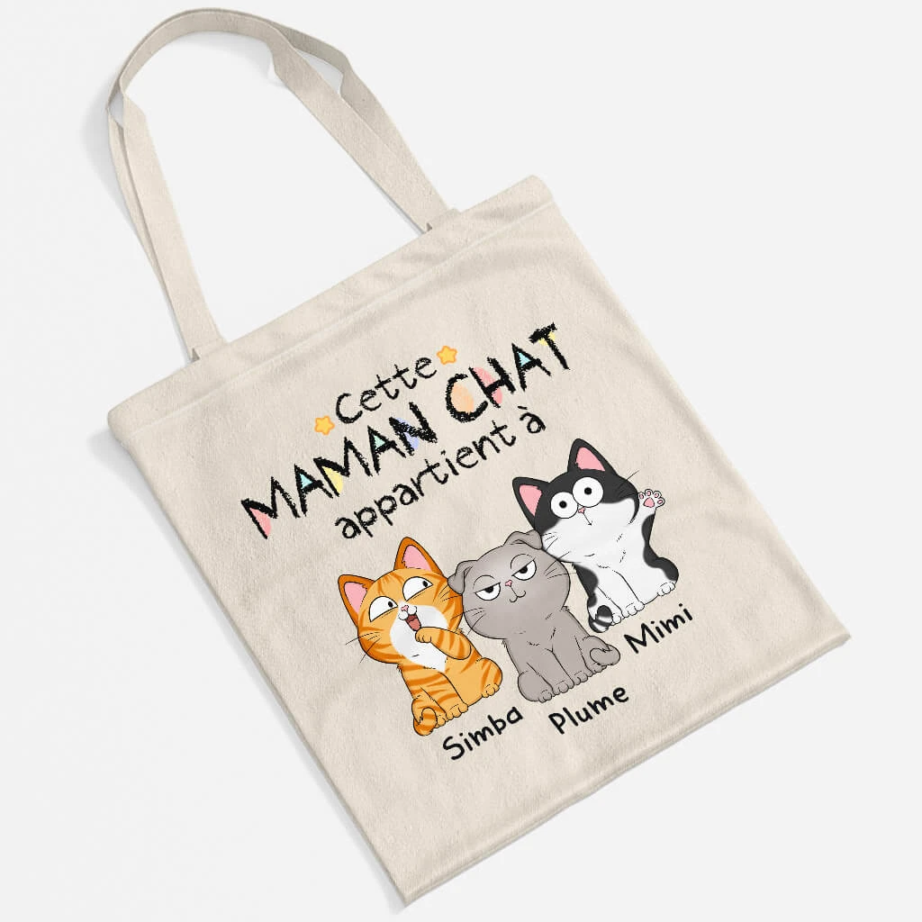Cette Maman Chat Appartient À – Tote Bag Chat Personnalisé