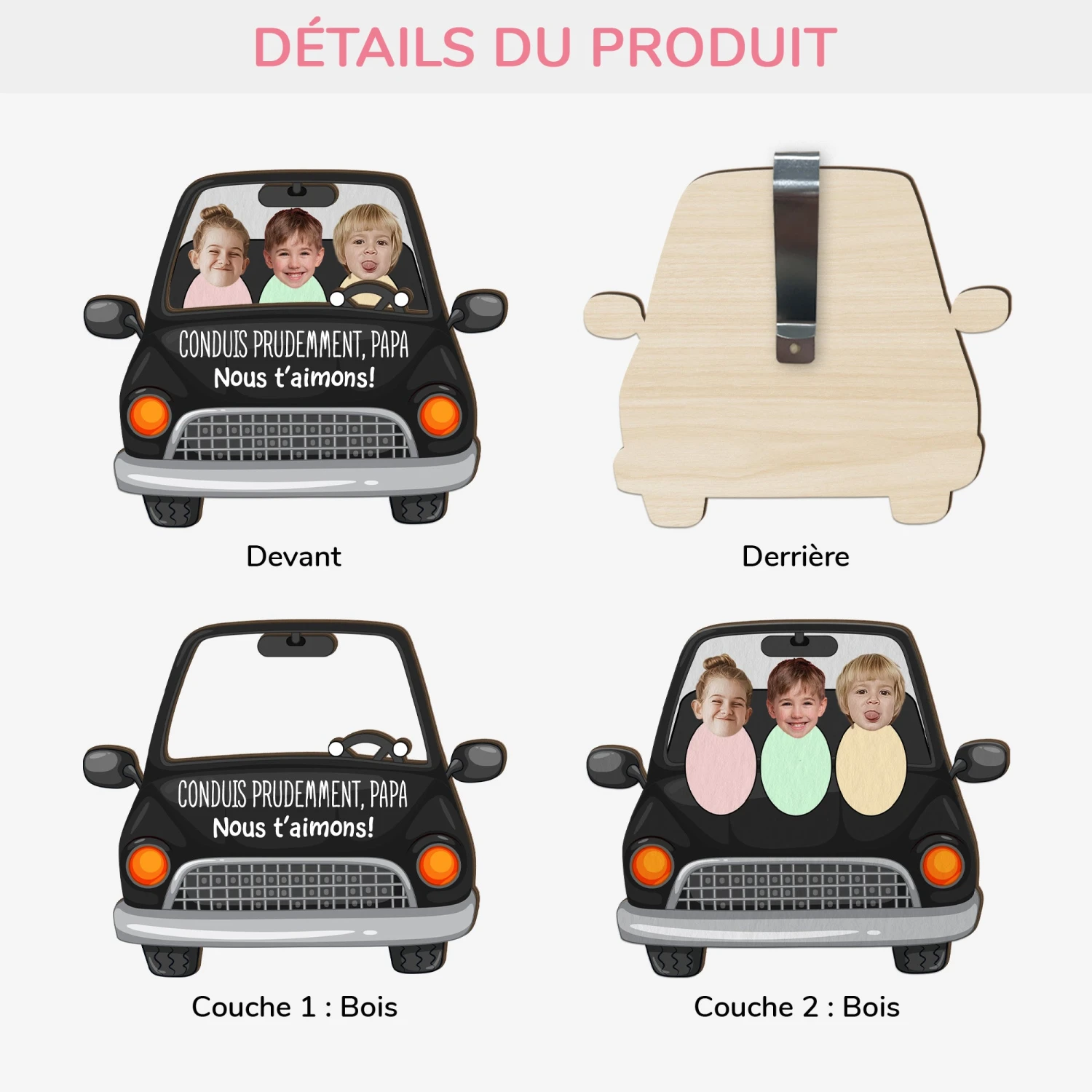 Clip Pare-Soleil De Voiture Personnalisé Papa – Conduis Prudemment – Version Voiture