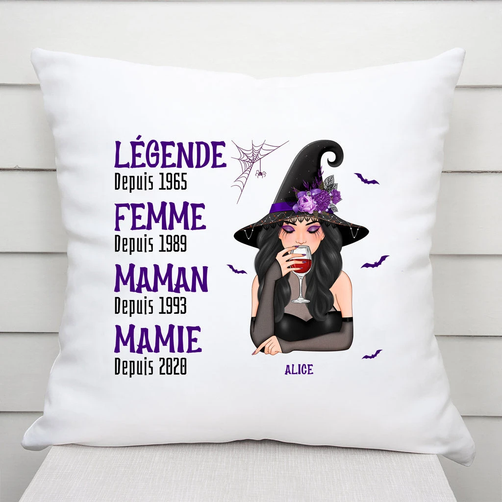 Coussin Légende Mamie Maman Sorcière Personnalisé