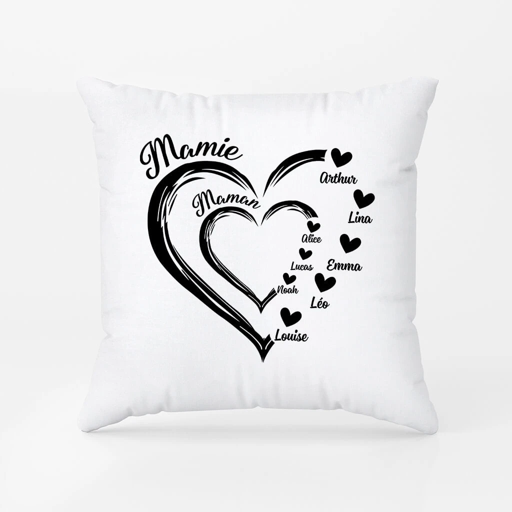 Coussin Maman Mamie Avec Coeur Rouge Personnalisé