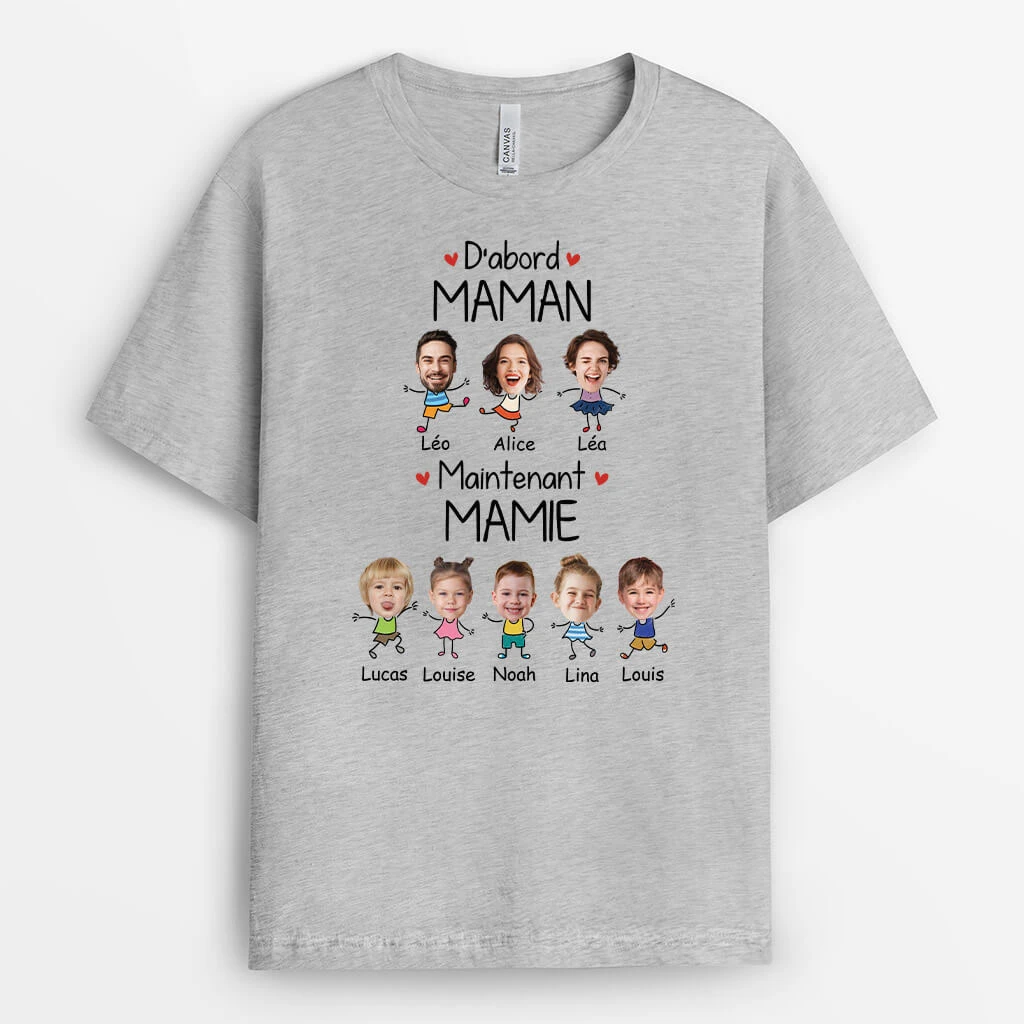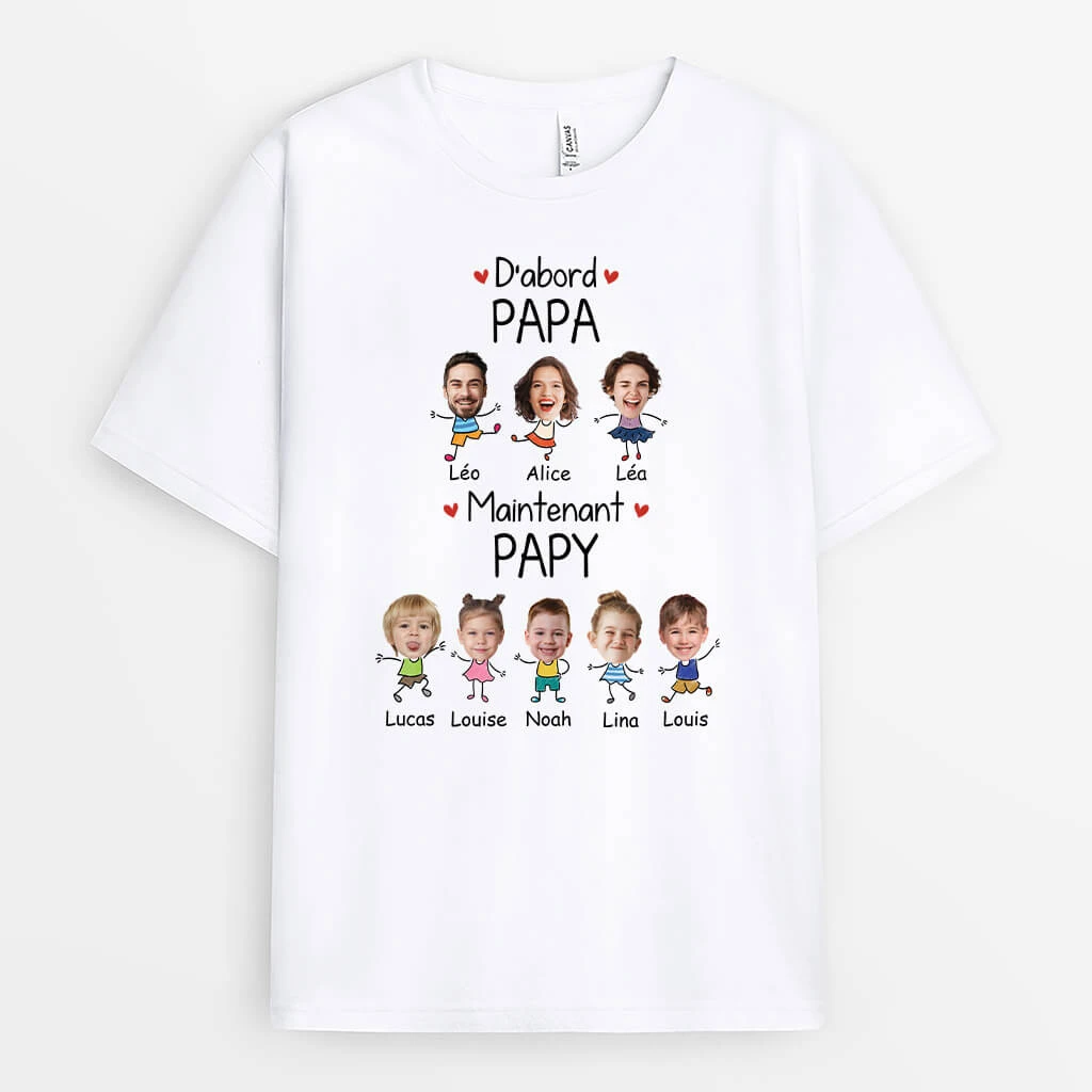 D’abord Papa Maintenant Papy Avec Visages – Tee Shirt Personnalisé