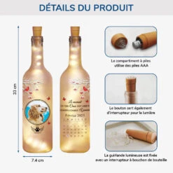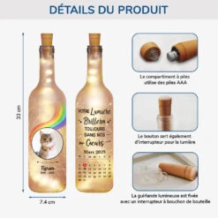 Bouteille Lumineuse Personnalisée – Votre Lumière Dans Mon Cœur – Photo Chat