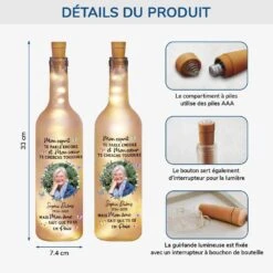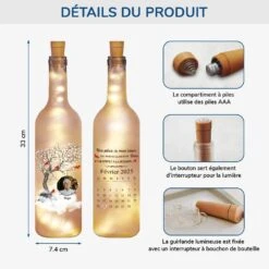 Bouteille Lumineuse Personnalisée Pour Mamie – Un Ange Qui Veille Sur Moi