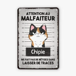 Plaque Métal Personnalisée – Attention Au Chat Malfaiteur