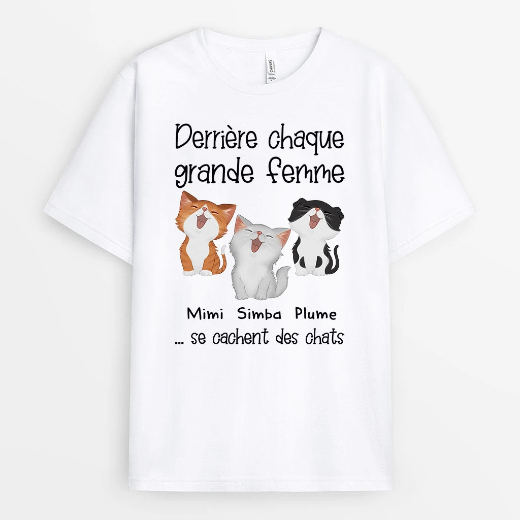 Derrière Chaque Grand Homme Grande Femme – Tee Shirt Chat Personnalisé