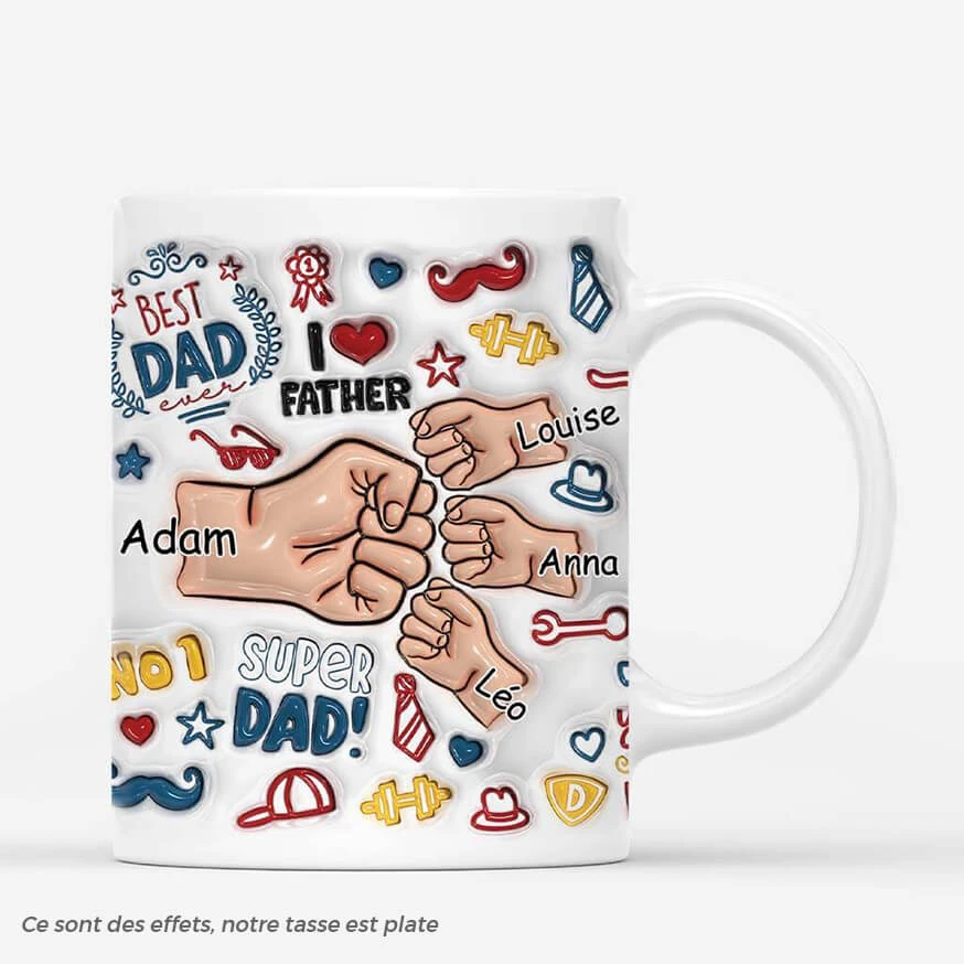 [Effet D’impression 3D] Meilleur Papa Avec Bosses De Poing Authentiques – Mug Papa Personnalisé