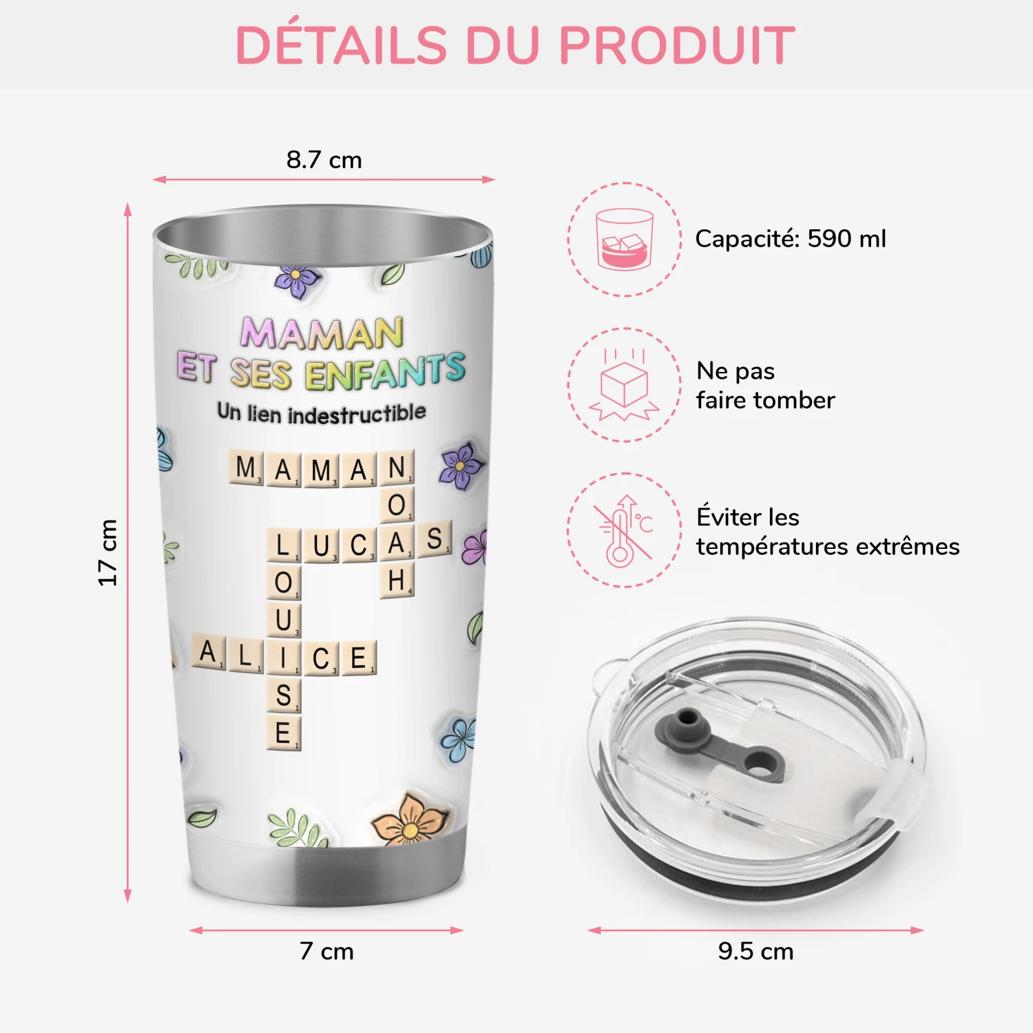 [Effet D’Impression 3D] Mug Isotherme 590ml Personnalisé – Maman Et Ses Enfants – Mots-Croisés