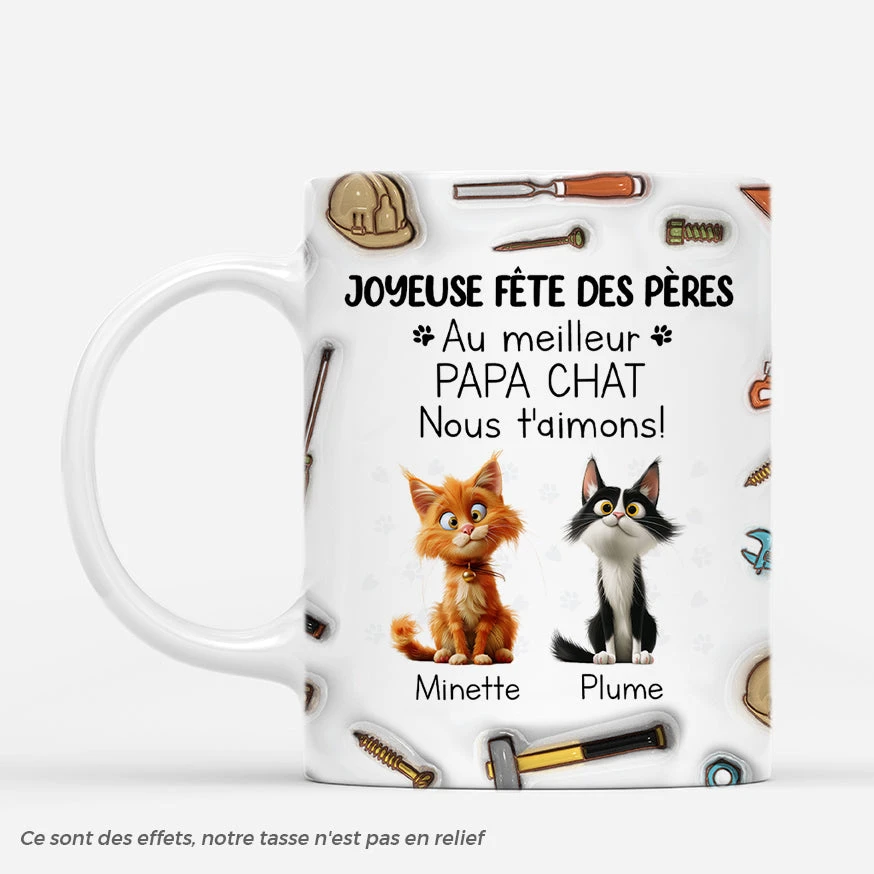 [Effet D’Impression 3D] Mug Personnalisé – Au Meilleur Papa Chat – Avec Outils