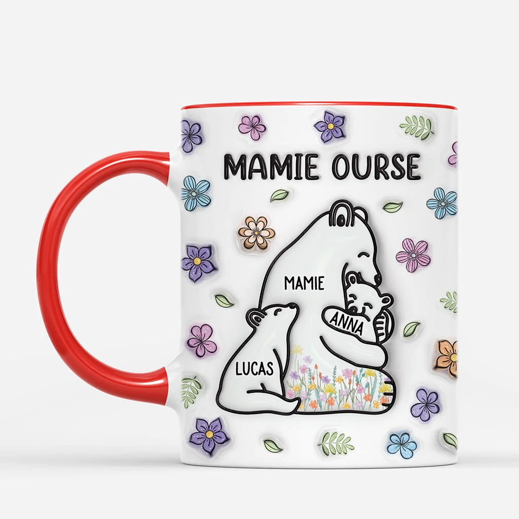[Effet D’Impression 3D] Mug Personnalisé – Maman Ours – Version Florale