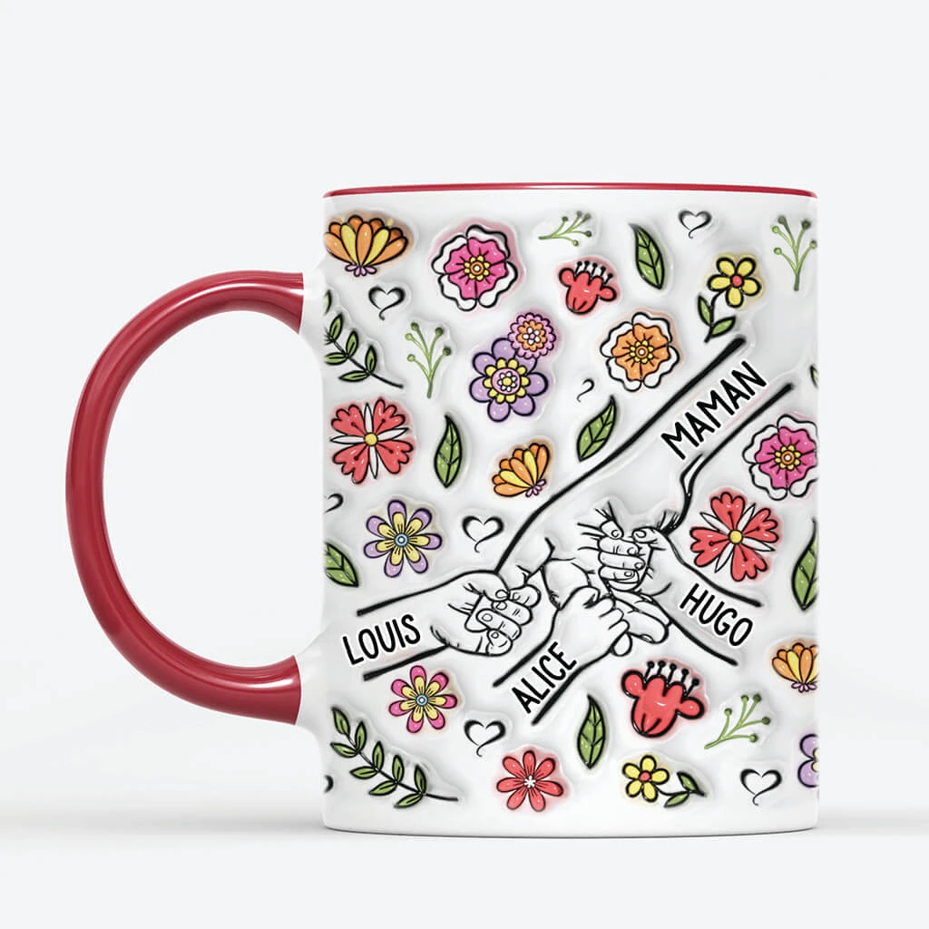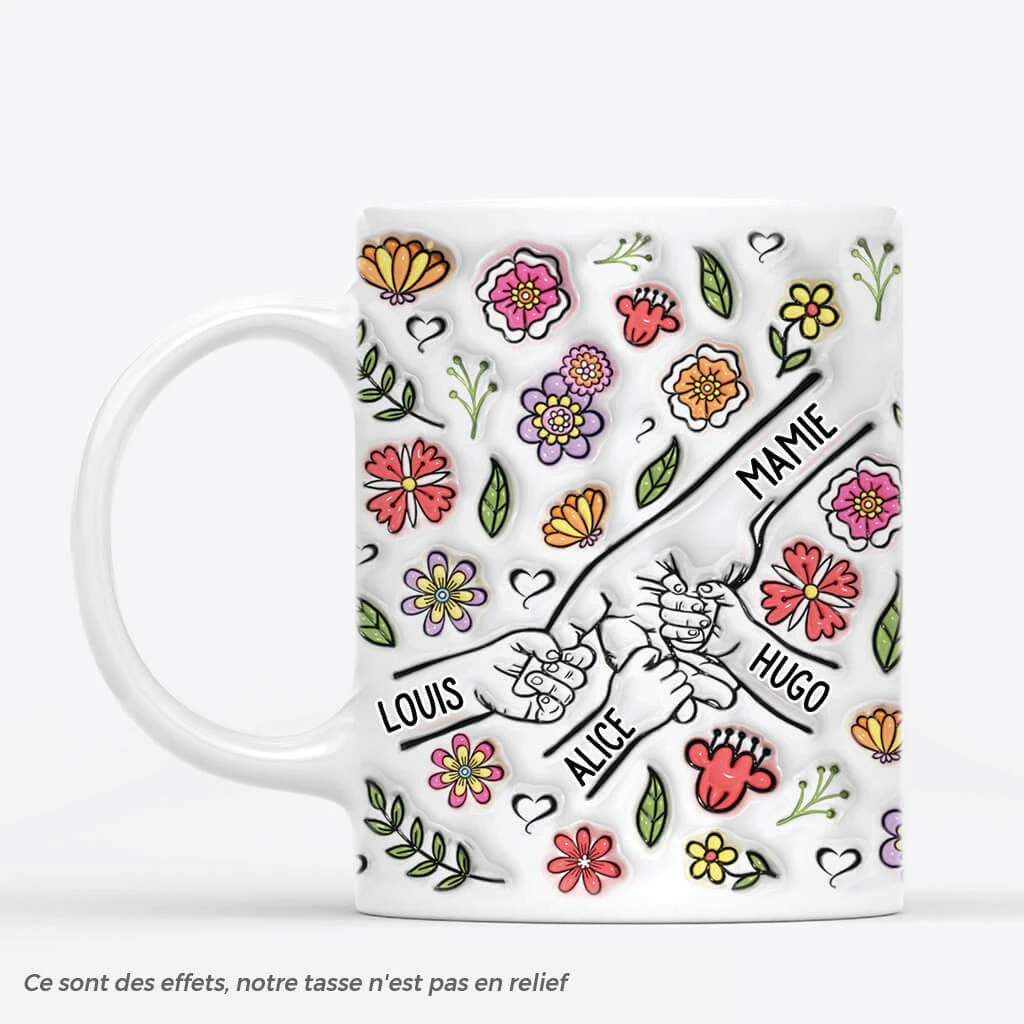 [Effet D’Impression 3D] Mug Personnalisé – Mamie – Fleurs Vives
