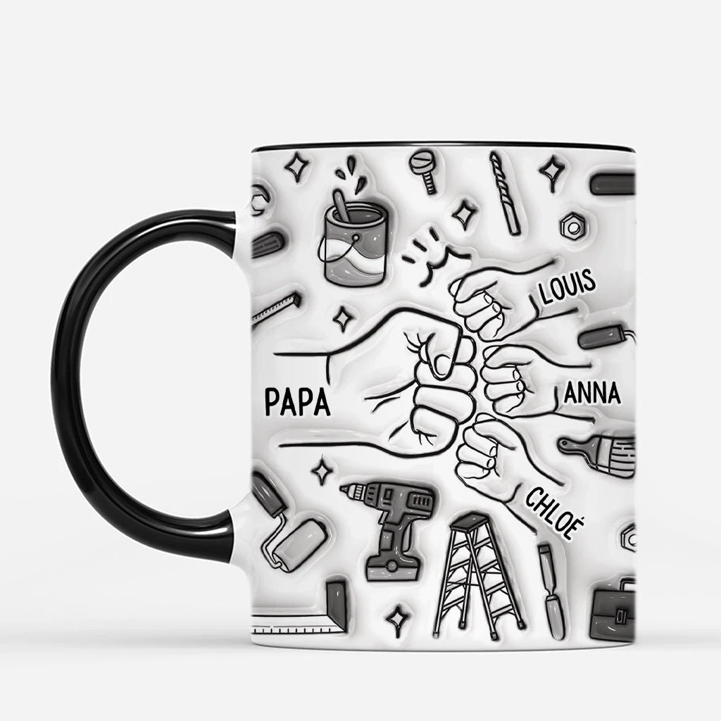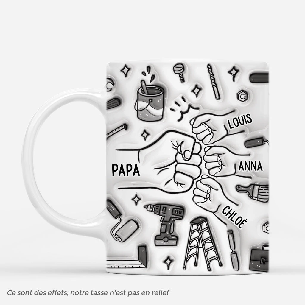 [Effet D’Impression 3D] Mug Personnalisé – Papa Bricoleur – Avec Poings Monochrome