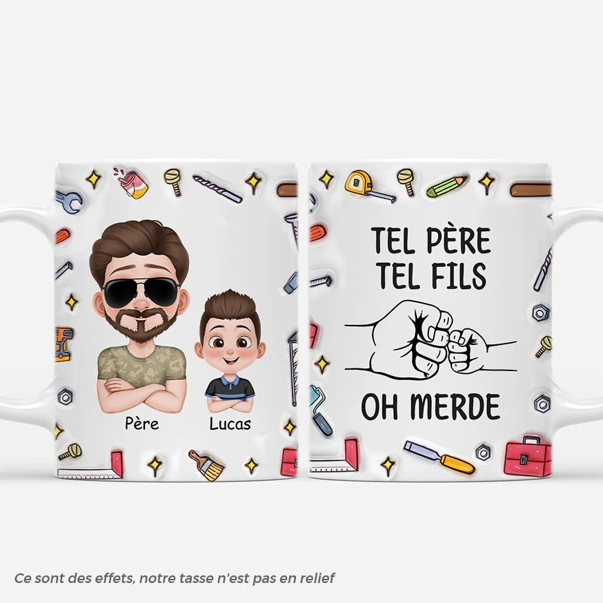 [Effet D’Impression 3D] Mug Personnalisé – Tel Père Tel Fils – Papa Bricoleur