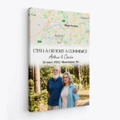 Là Où Tout A Commencé Version Carte Et Photos Vintage – Toile Pour Anniversaire De Couple