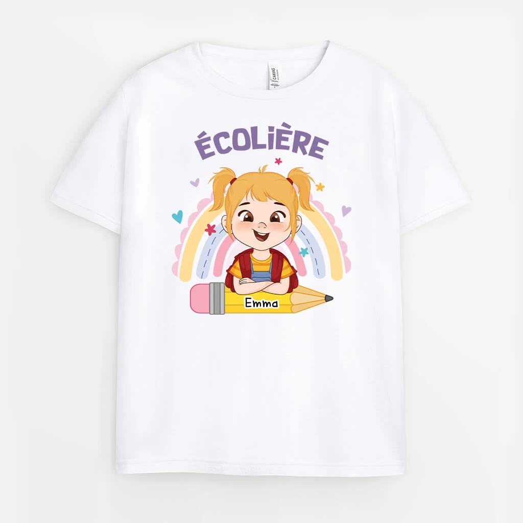 Fille D’École Avec Arc-En-Ciel – T-shirt Personnalisé Pour Enfant Fille