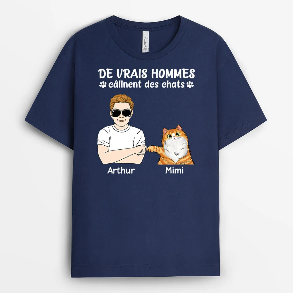 Les Vrais Hommes Câlinent Des Chats Version Se Cogner De Poing – Tee Shirt Avec Des Chats