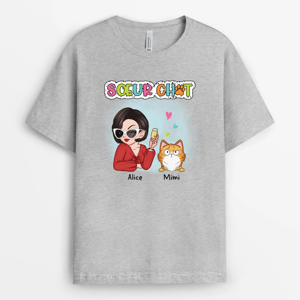 Maman/ Sœur De Chat Colorée – T-shirt Chat Personnalisé Pour Femme