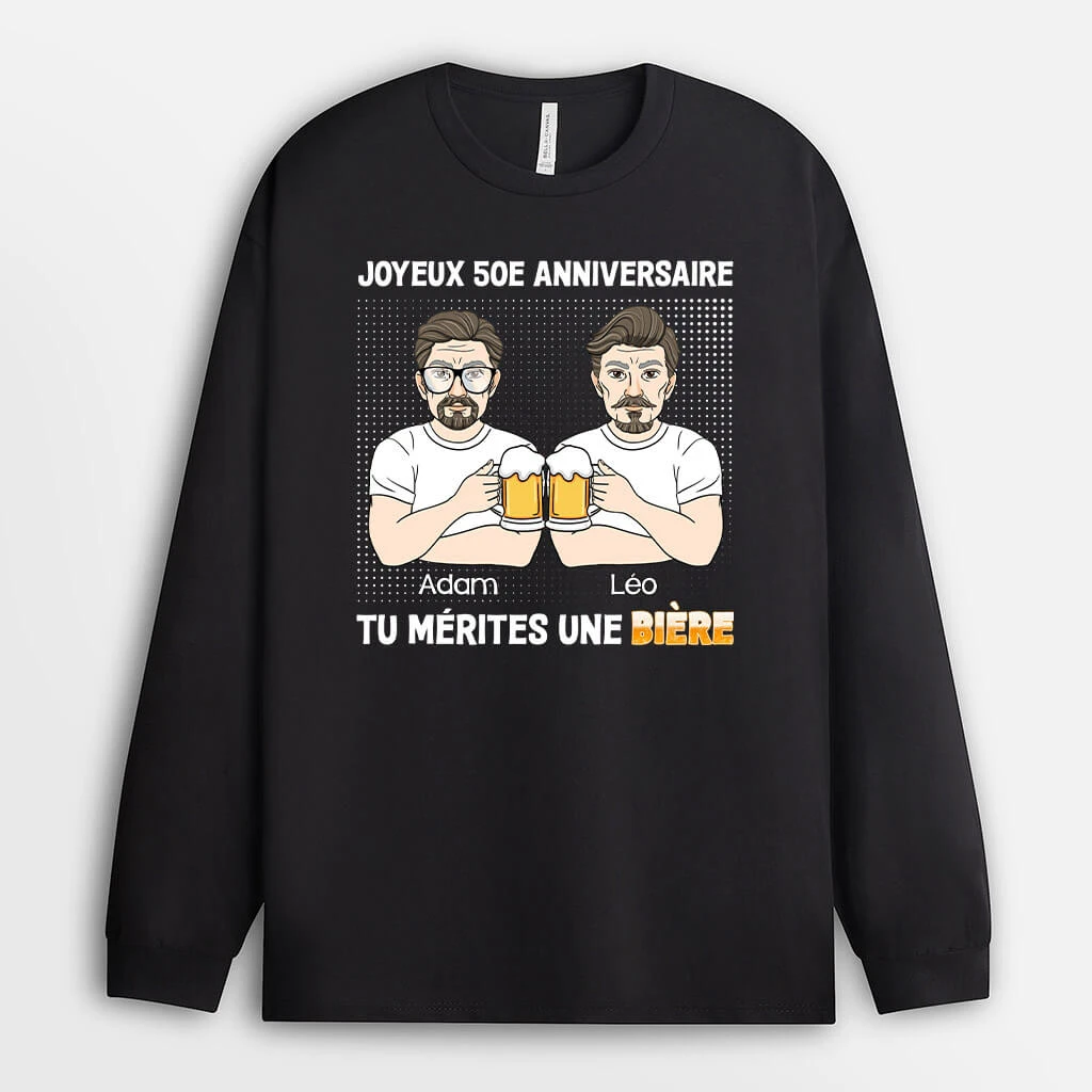 Manches Longues Joyeux Anniversaire De 50 Ans Tu Mérites Une Bière Personnalisé