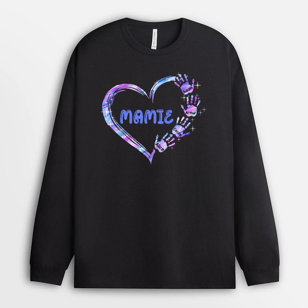 Manches Longues Le Cœur De Mamie Maman Mains Colorées Personnalisé