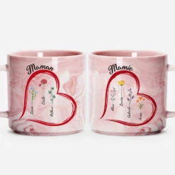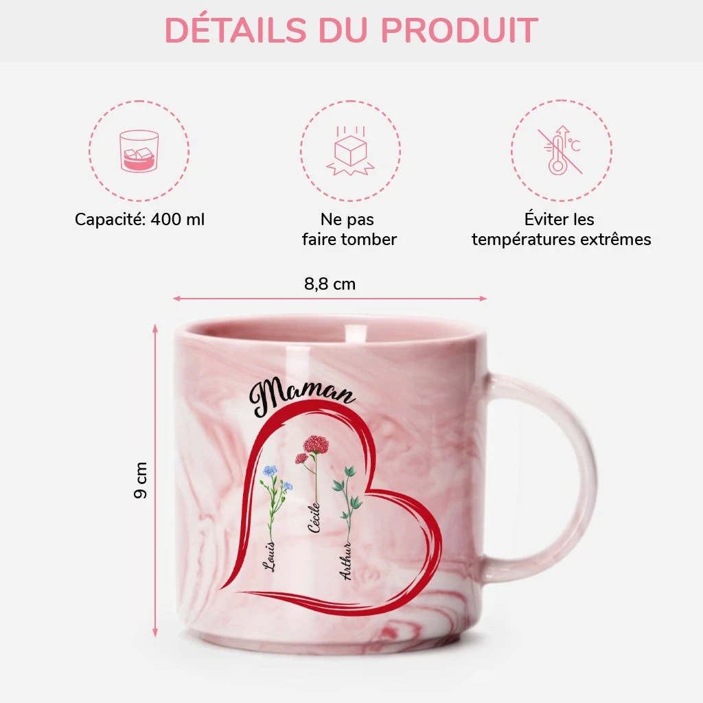 Mug Effet Marbre Personnalisé – Maman Mamie – Cœur Et Fleurs