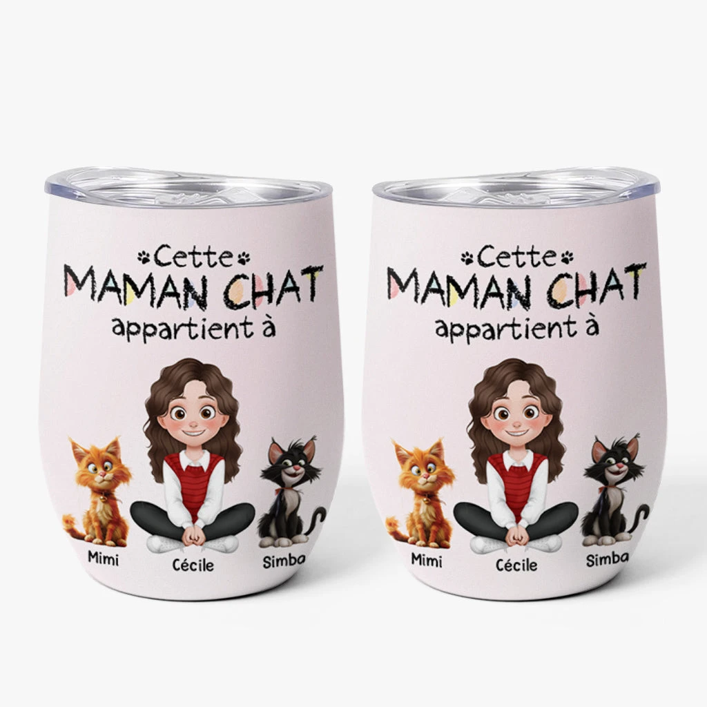 Mug Isotherme 355ml Personnalisé – Cette Maman Chat Appartient À – Design Cartoon