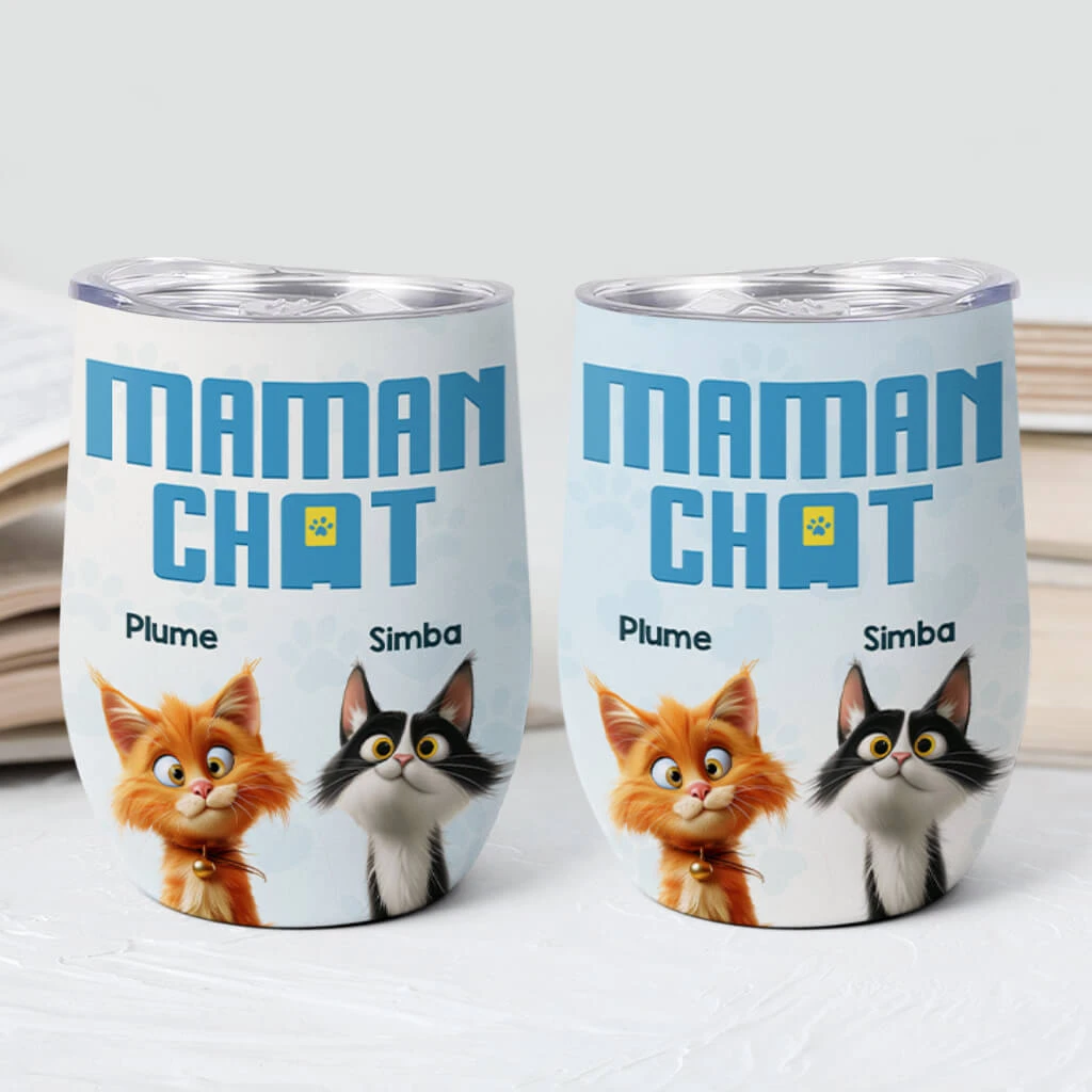 Mug Isotherme 355ml Personnalisé – Maman Chat/Papa Chat 3D – Design Cartoon