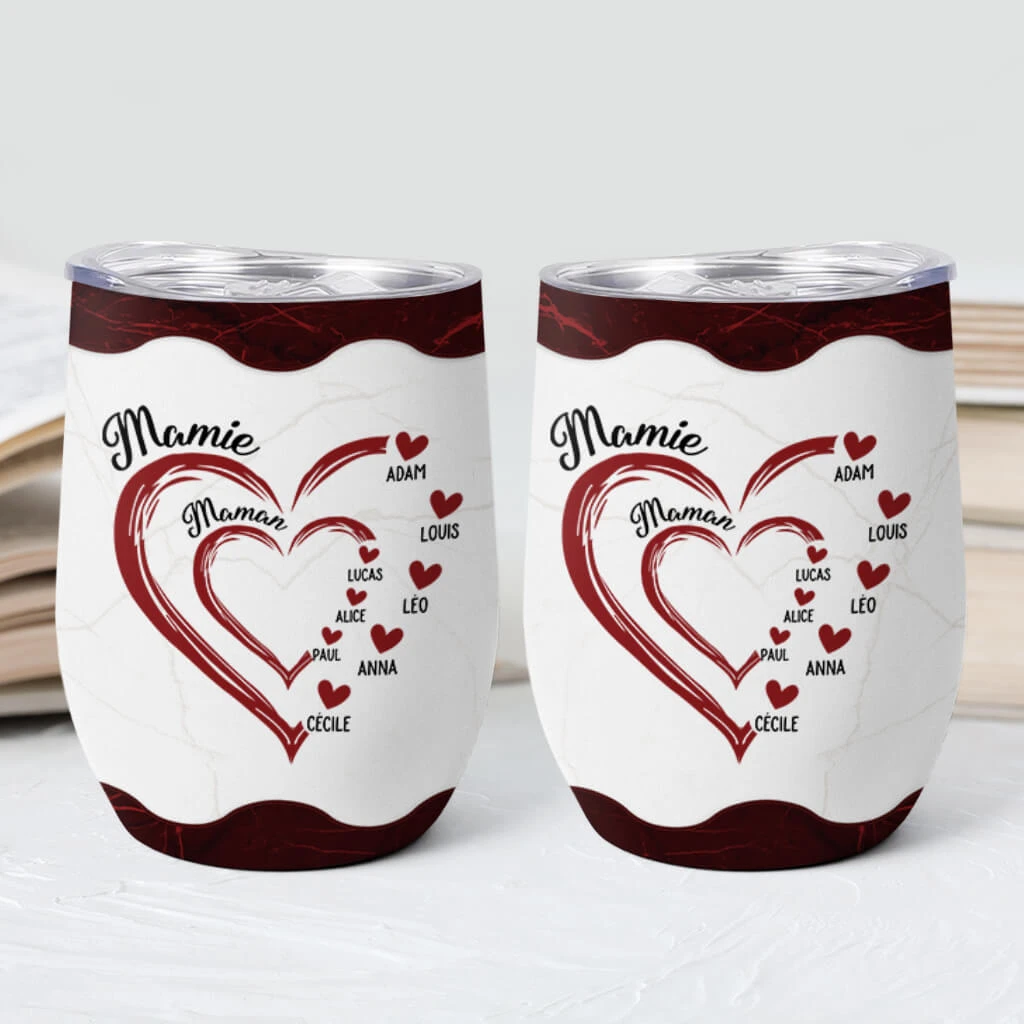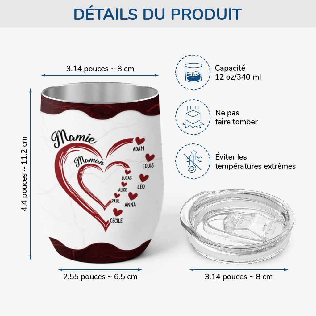 Mug Isotherme 355ml Personnalisé – Maman Mamie – Coeurs Rouges