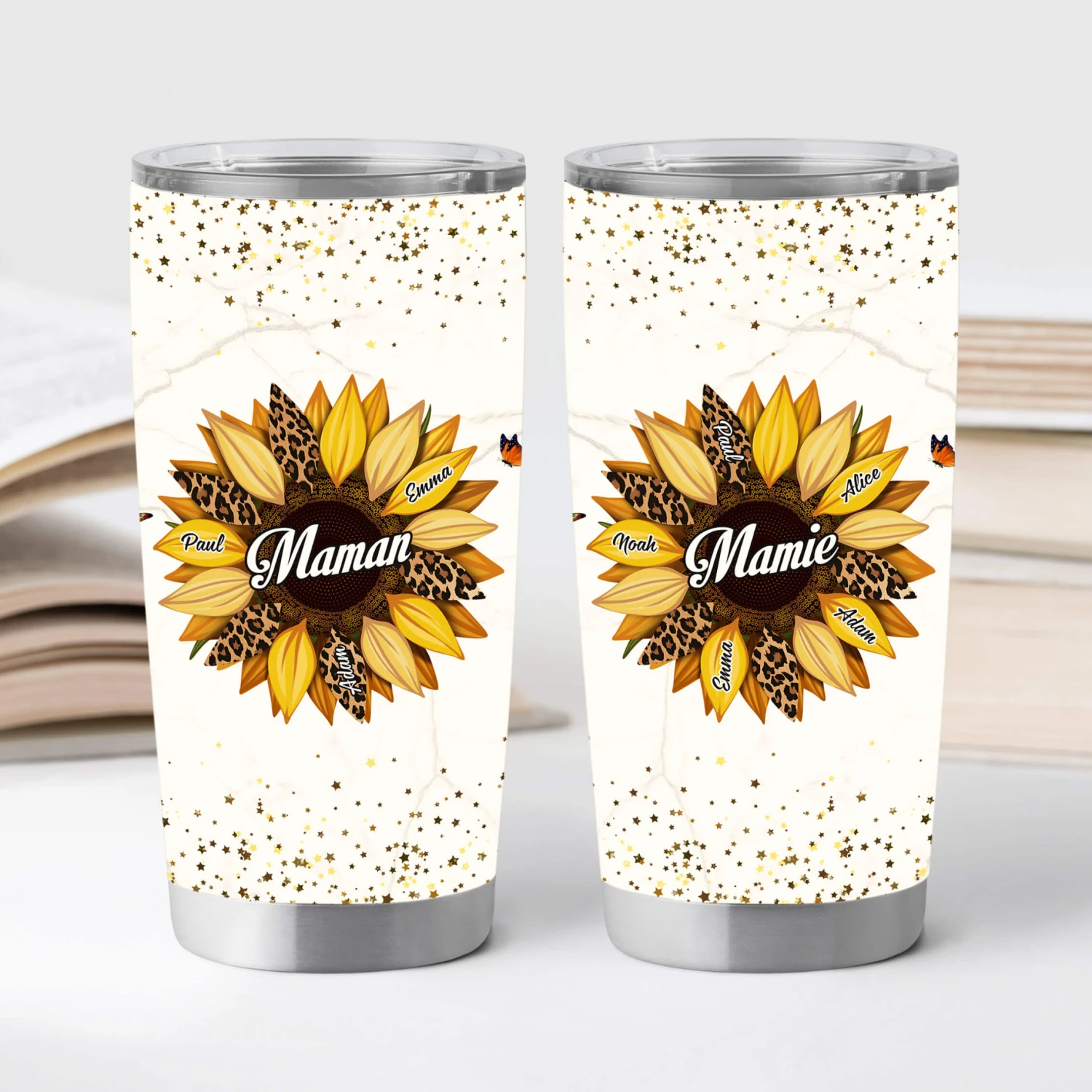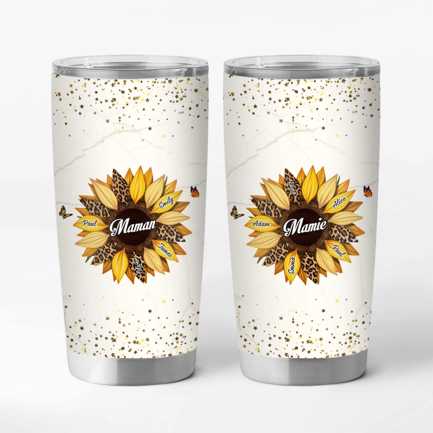Mug Isotherme 590ml Personnalisé – Dessin Fleur Tournesol – Maman Et Mamie