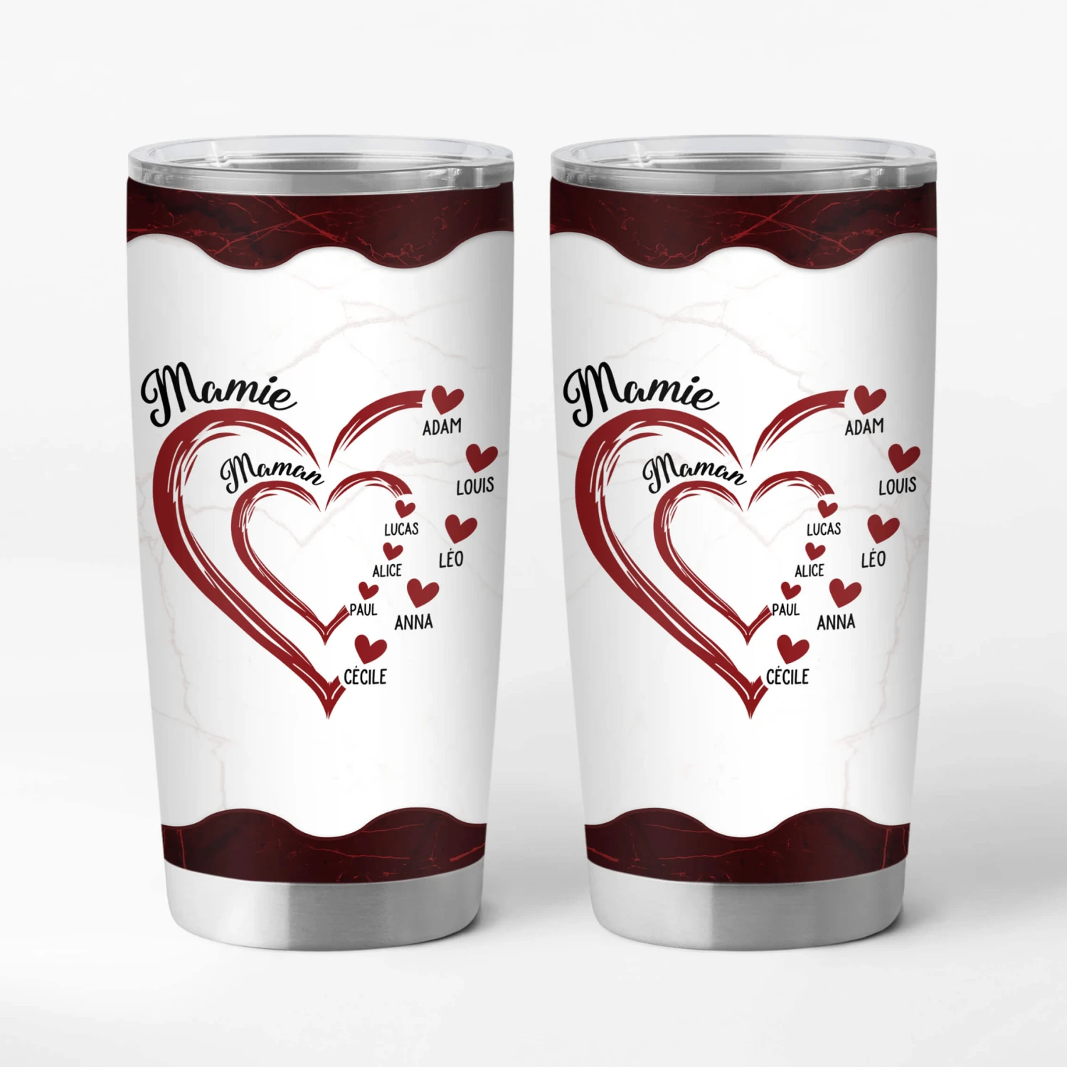 Mug Isotherme 590ml Personnalisé – Maman Mamie – Coeurs Rouges