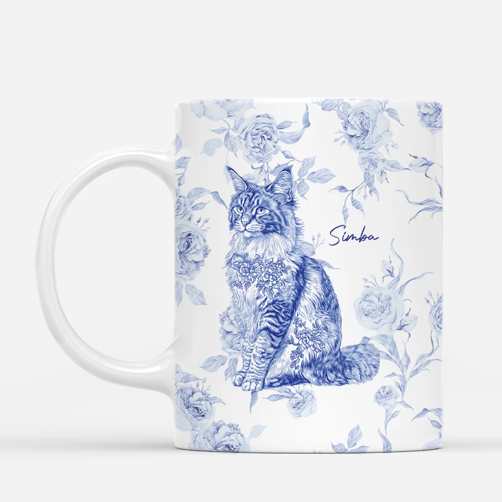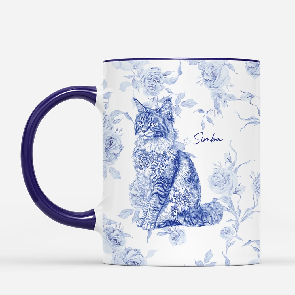 Mug Personnalisé Chat – Floral Style Blue-Toile