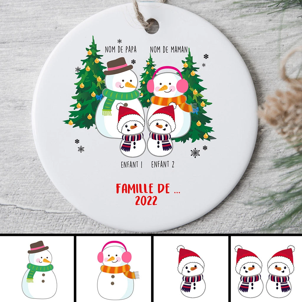 Ornement De Noël Famille Bonhomme De Neige Personnalisé