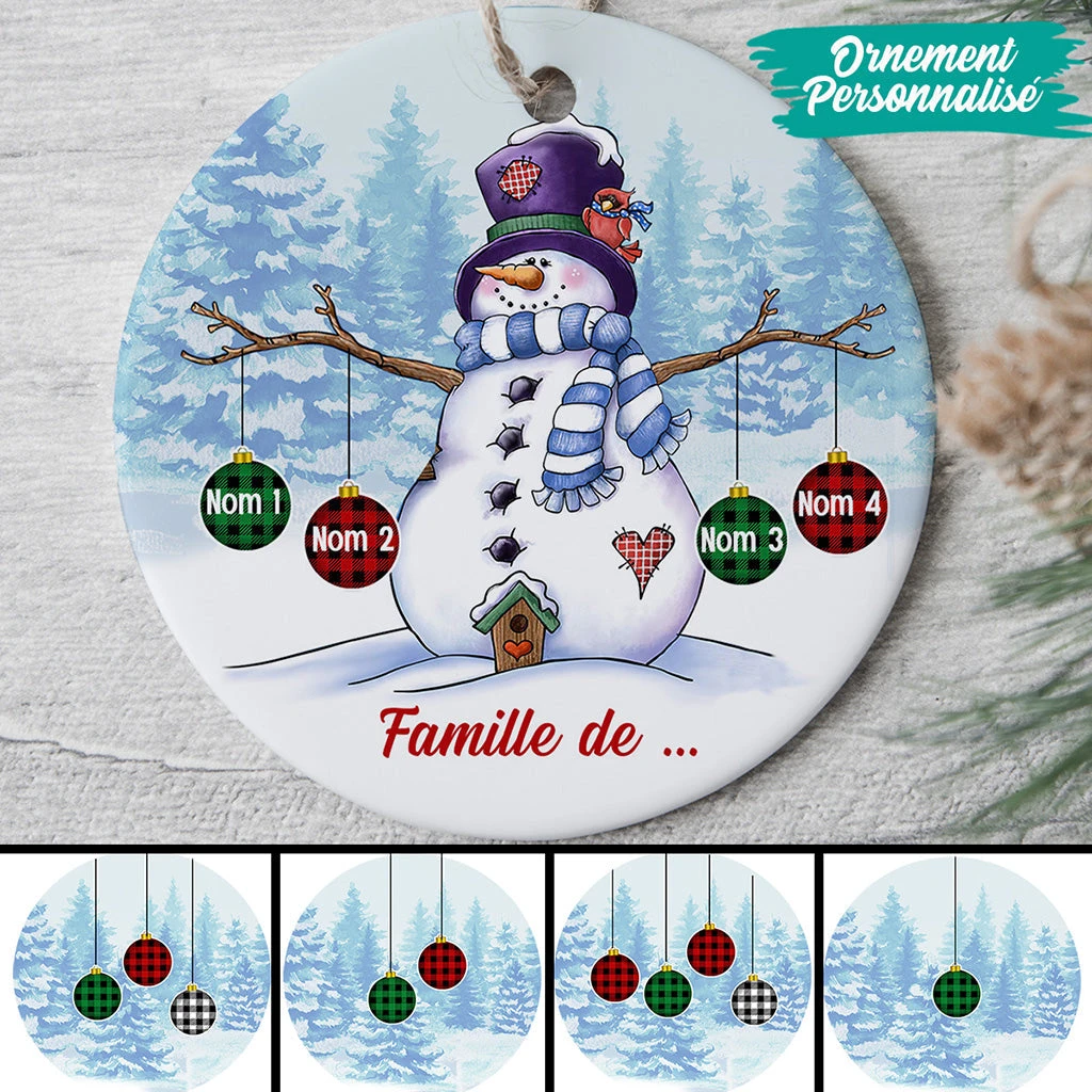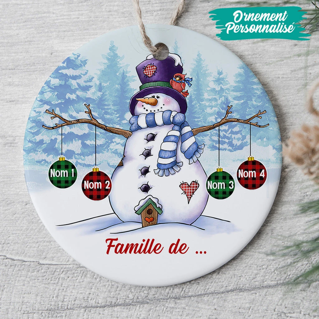 Ornement Famille Bonhomme De Neige Personnalisé