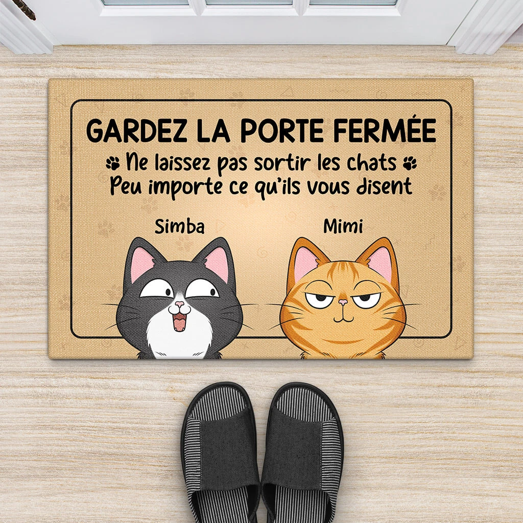 Paillasson Chat Personnalisé – Garder La Porte Fermée – Chat Espiègle