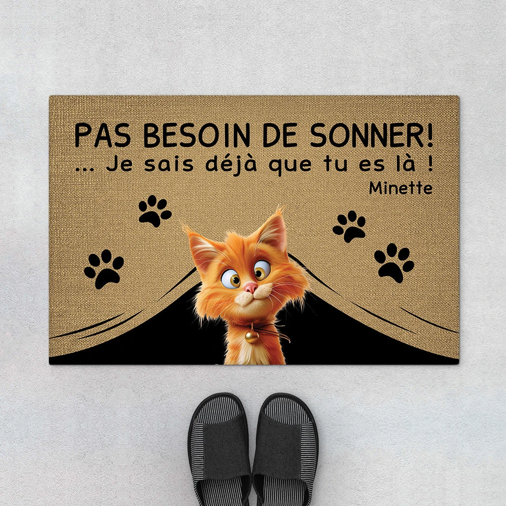 Paillasson Chat Personnalisé – Pas Besoin De Frapper – Version Vintage -Design Cartoon