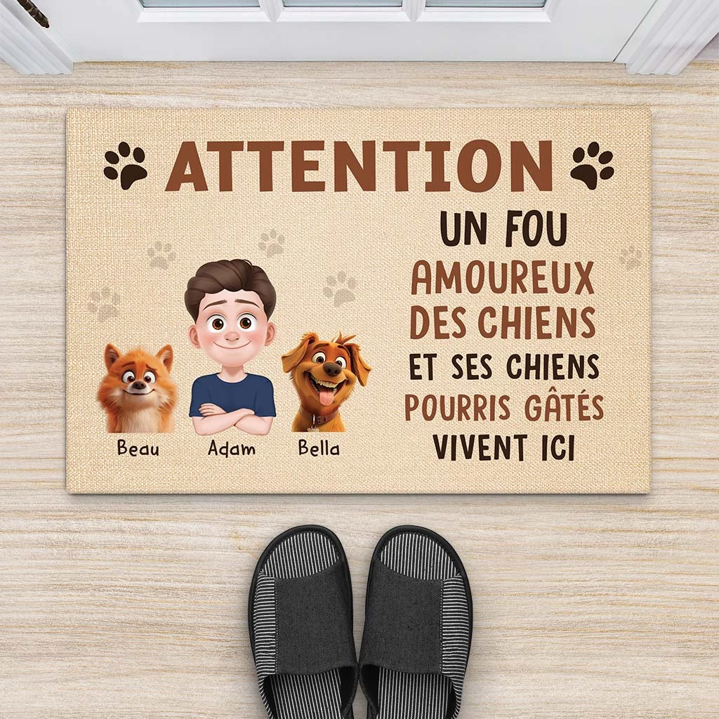 Paillasson Chien Personnalisable – Attention – Design Cartoon