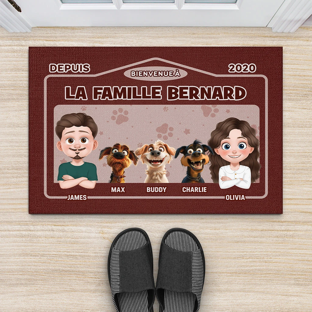 Paillasson Chien Personnalisé – Bienvenue Chez Nous Depuis – Design Cartoon