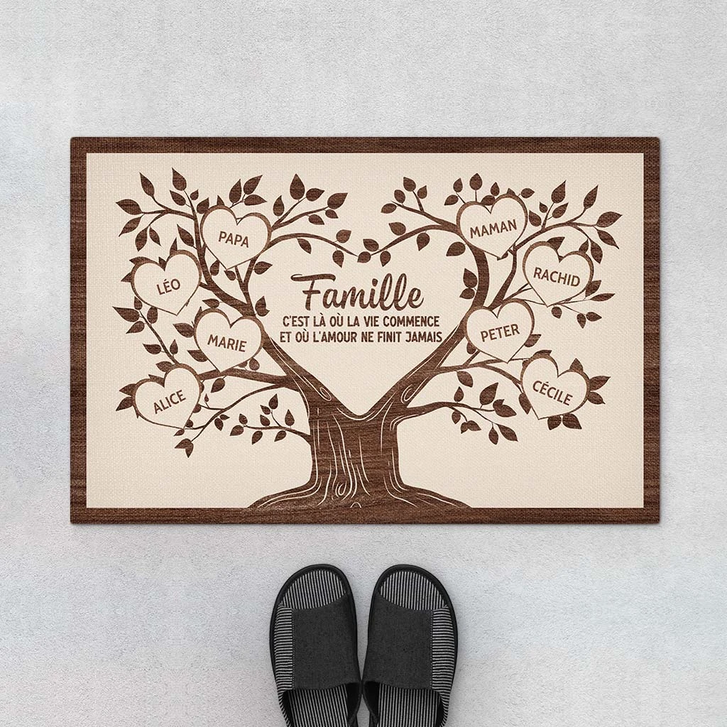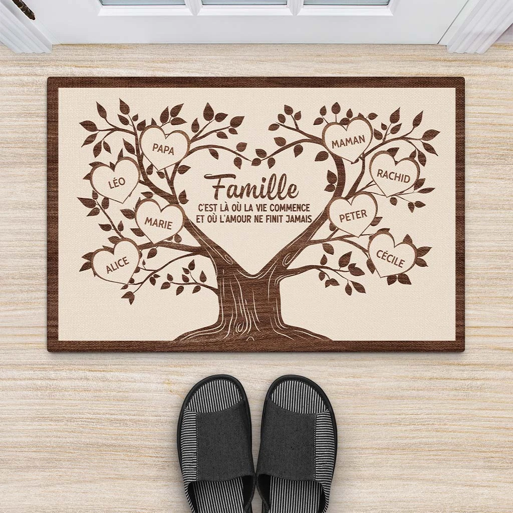 Paillasson Personnalisé Famille Avec Arbre Cœur Dessiné