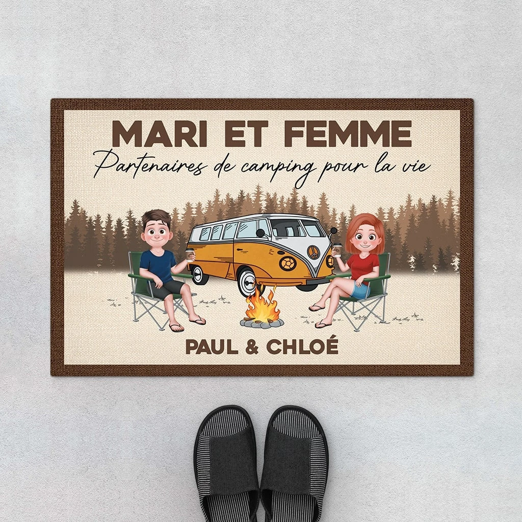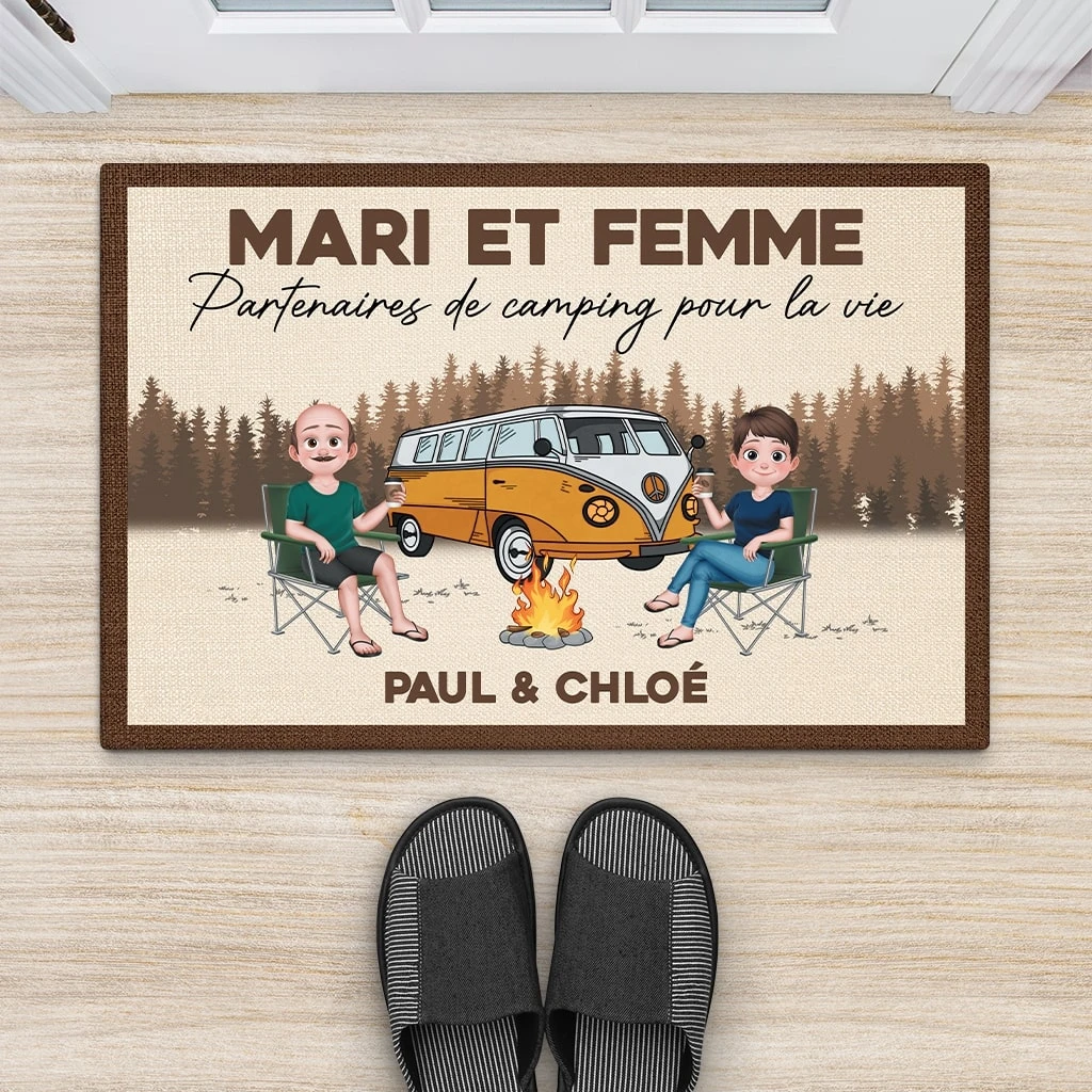 Paillasson Couple Personnalisé – Pour les amoureux du camping et de la vie à deux