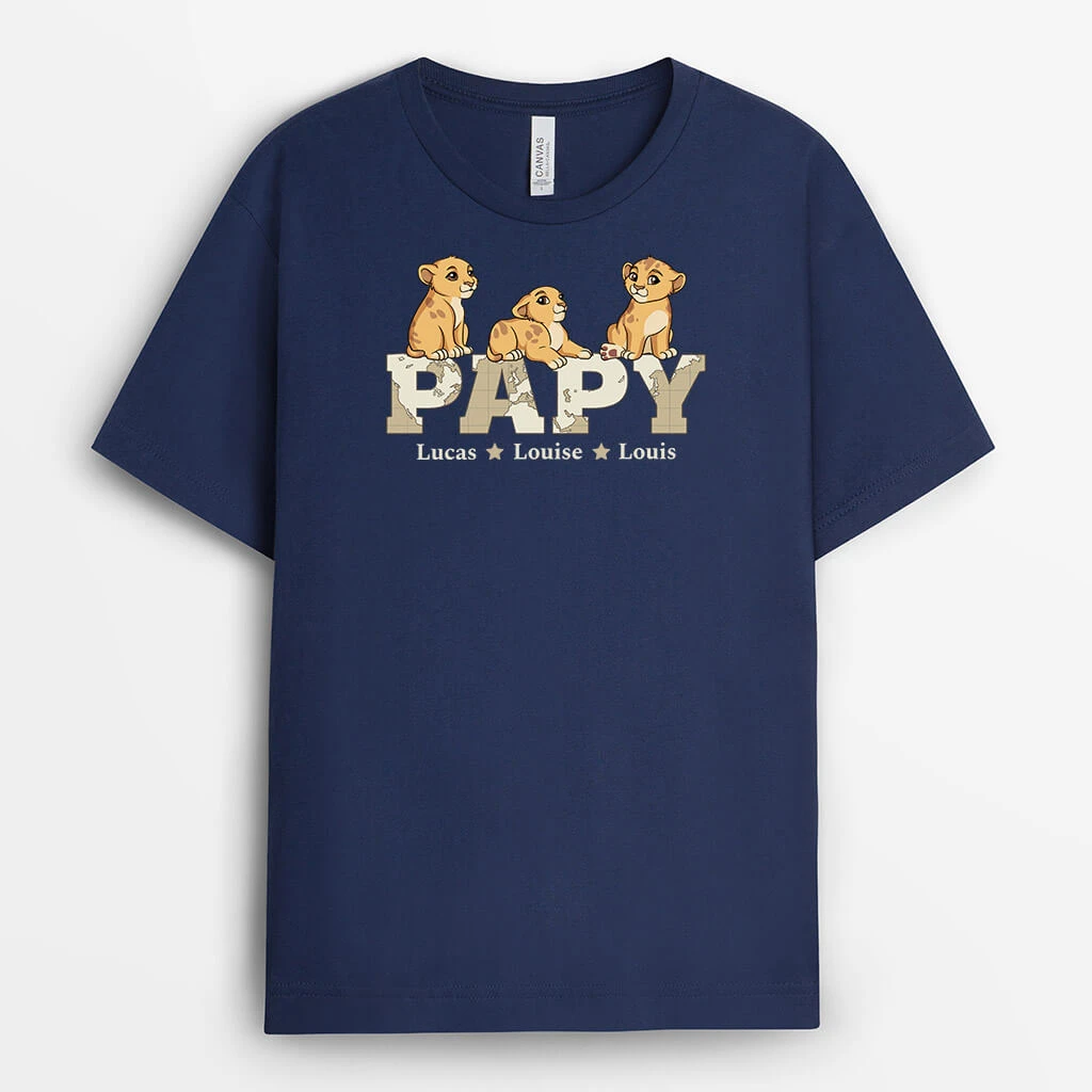 Papy Avec Ses Petits Lions Version Carte – Tee Shirt Papy Personnalisé