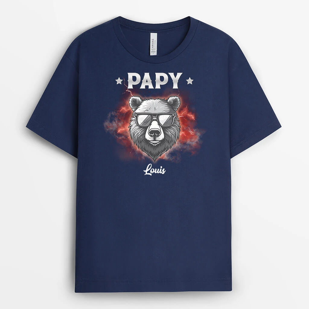 Papy Ours Cool Version Monochrome Avec Tonnerre – T-shirt Papy Personnalisé