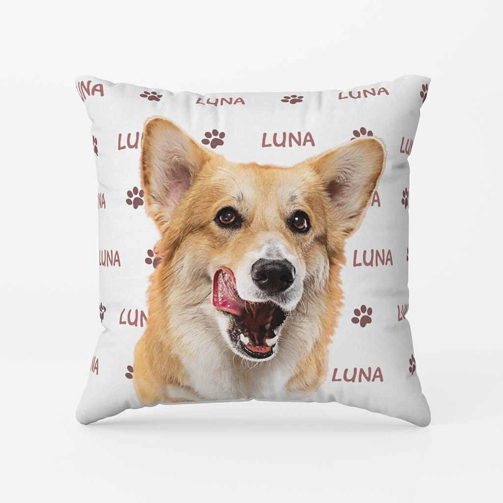 Photo De Chien Avec Nom Et Empreintes – Coussin Chien Personnalisable