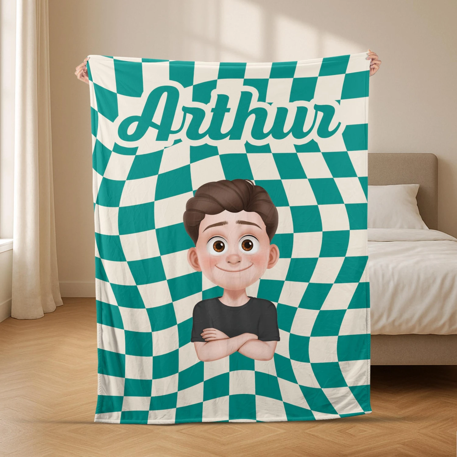Avec son motif à carreaux intemporel et l’ajout d’un prénom, ce plaid devient un accessoire à la fois déco et sentimental. Parfait pour se réchauffer avec style ou offrir un moment de douceur.