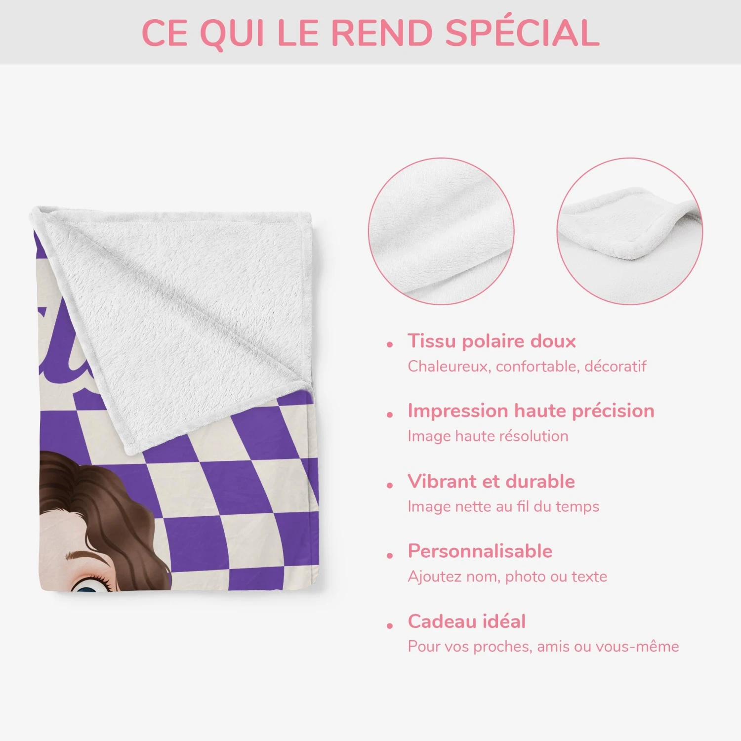 Offrez ou adoptez ce plaid personnalisé femme pour un confort stylé.