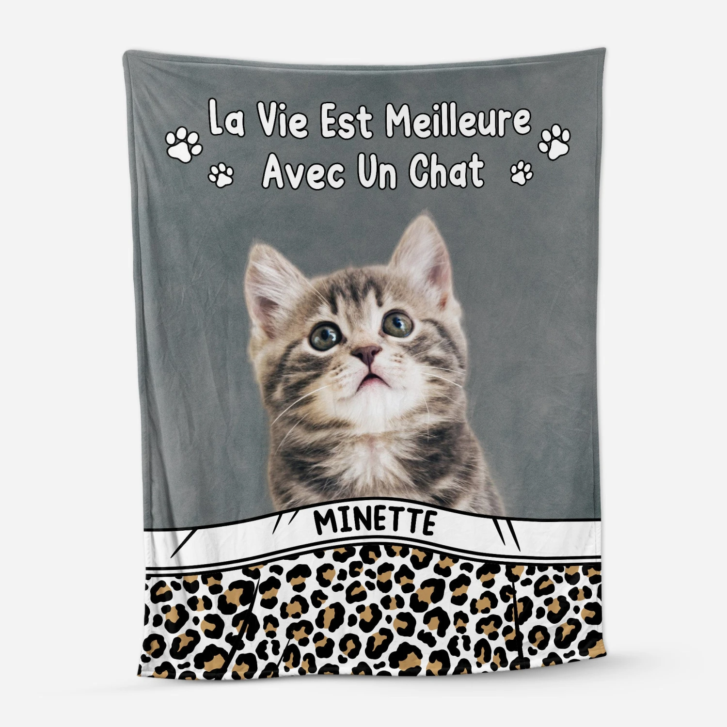 Plaid Personnalisé Photo Chat – La Meilleure Vie à Petits Pas de Velours