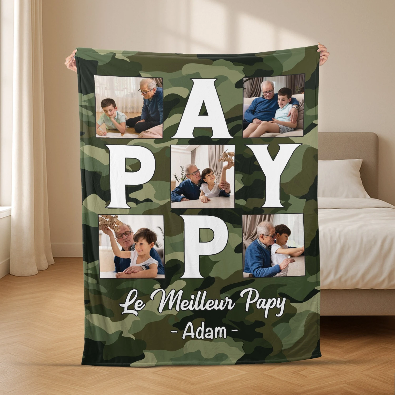 Surprenez votre papa avec ce plaid personnalisé unique à son image.