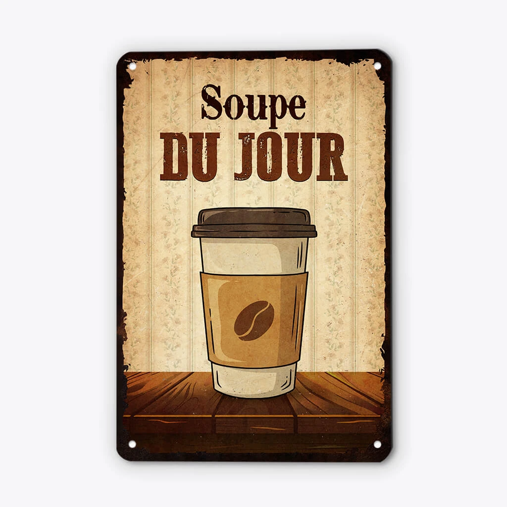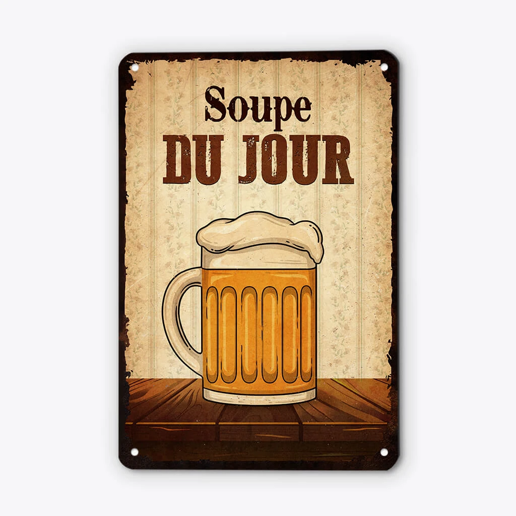 Apportez un sourire à chaque passage grâce à cette plaque de porte drôle : “Soupe du jour : Terminez votre assiette”.