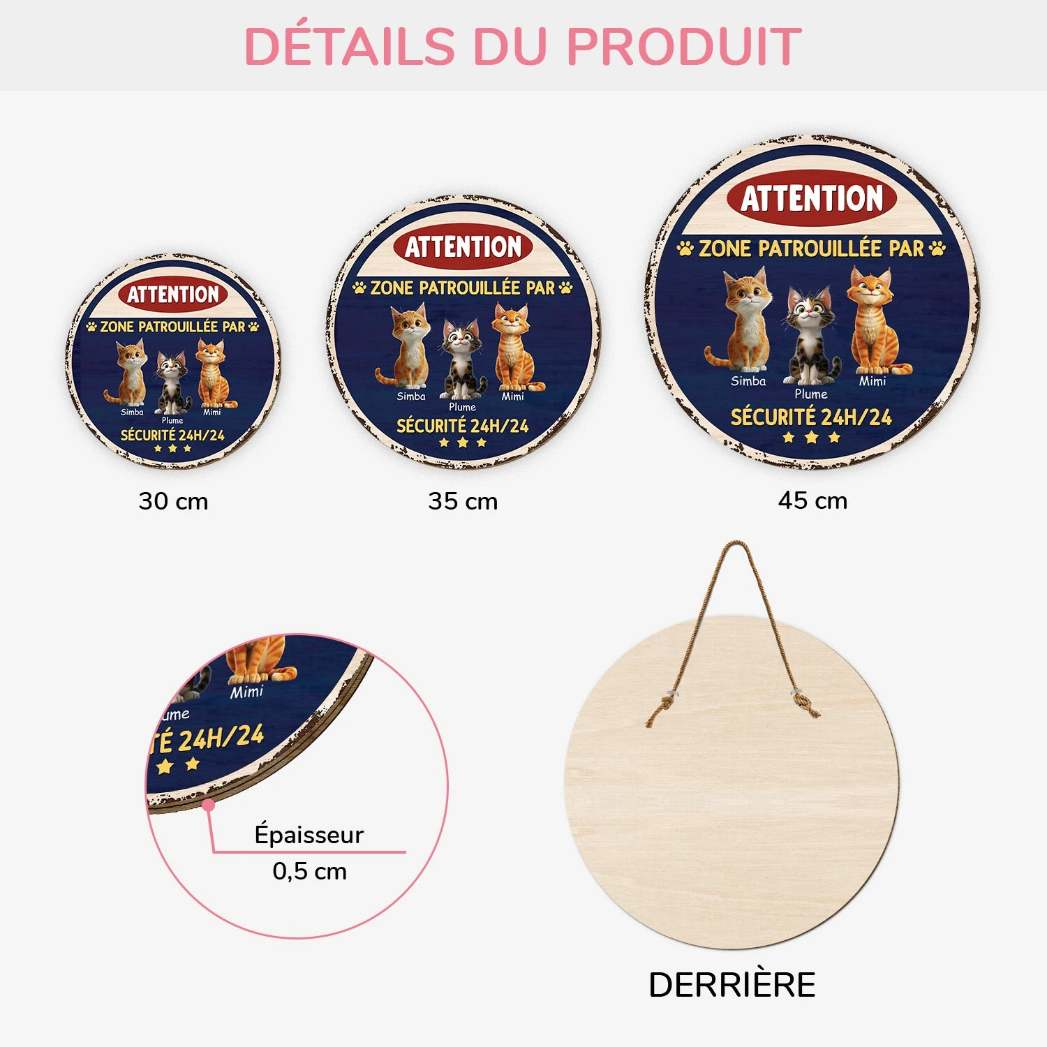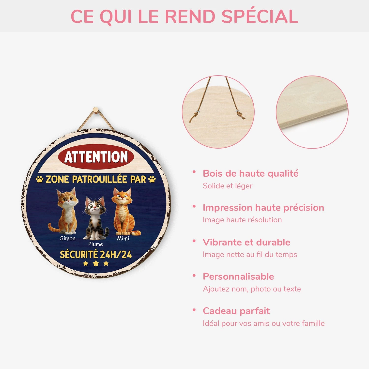 Plaque En Bois Personnalisée À Suspendre – Zone Patrouillée Avec Chat