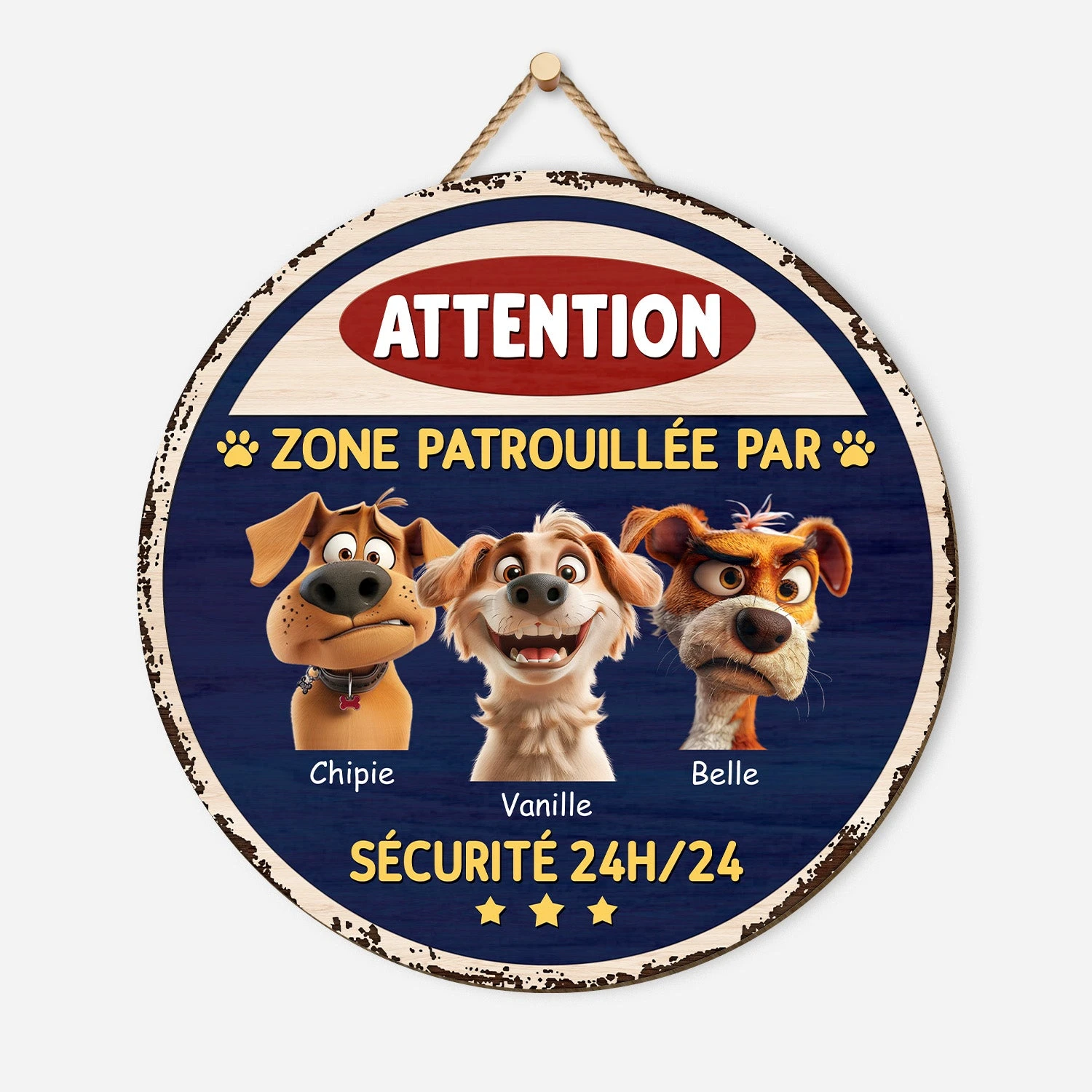 Plaque En Bois Personnalisée À Suspendre – Zone Patrouillée Avec Chien