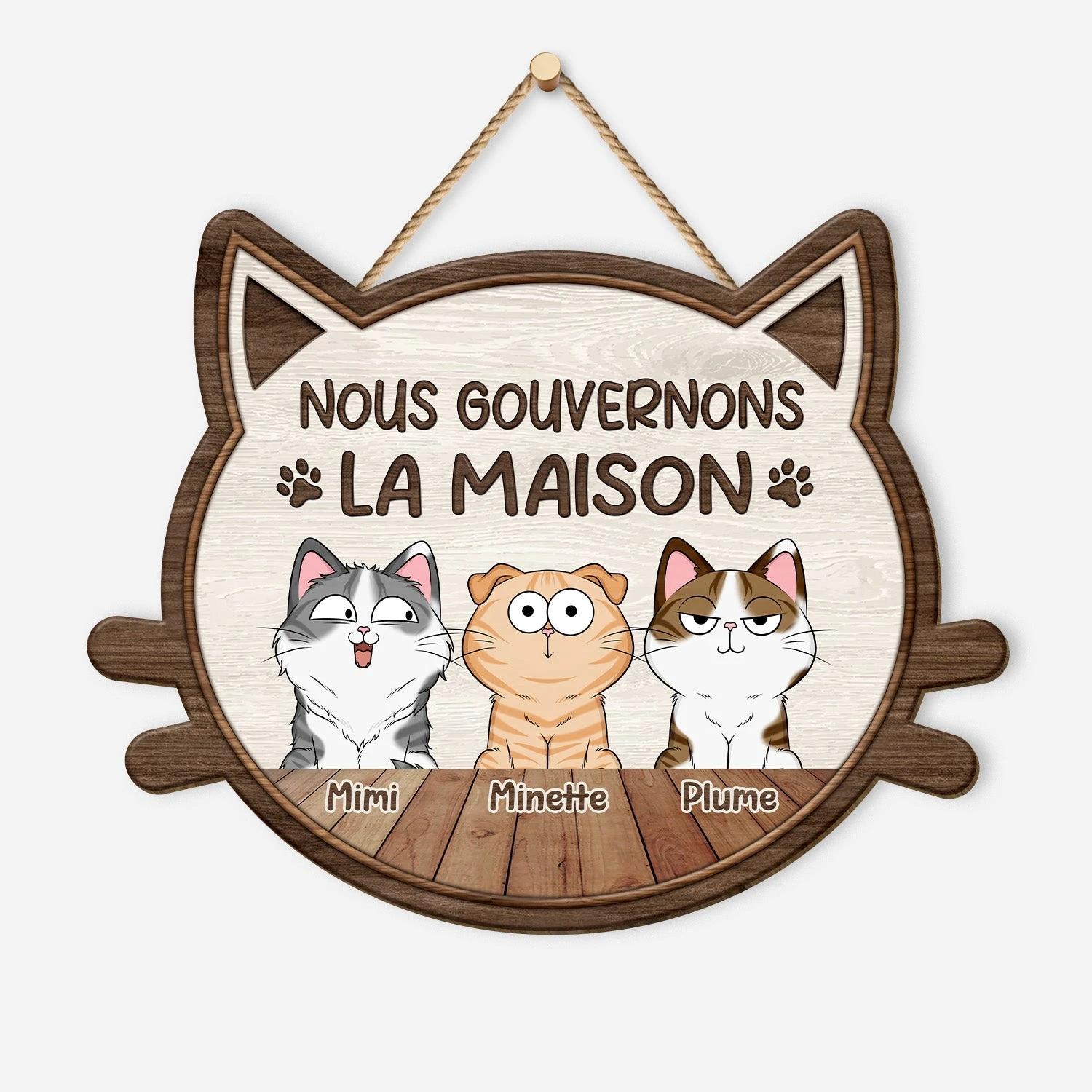 Plaque En Bois Personnalisée Avec Chat À Suspendre – Nous Gouvernons La Maison